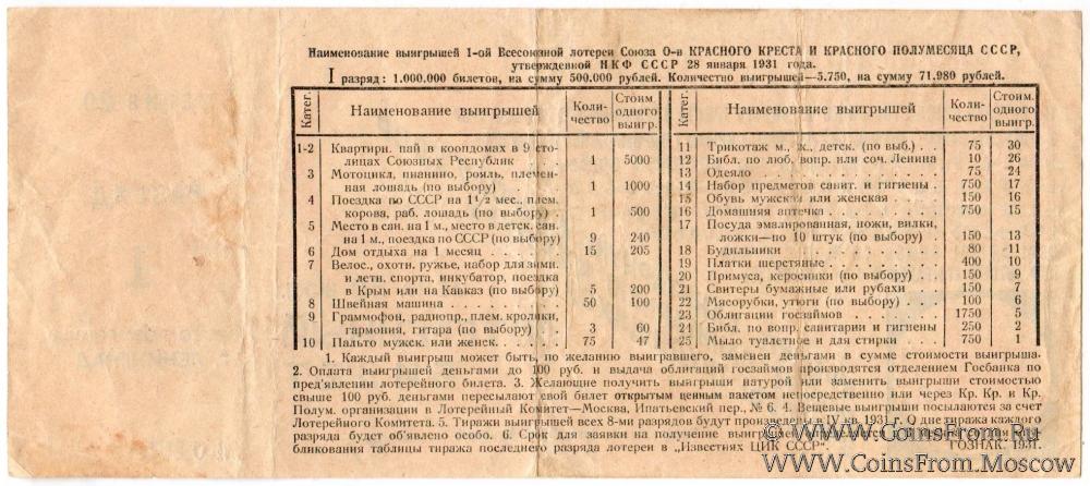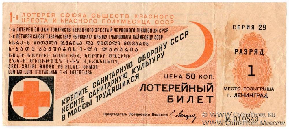 Лотерейный билет. Разряд 1 - Ленинград. 1-я лотерея.