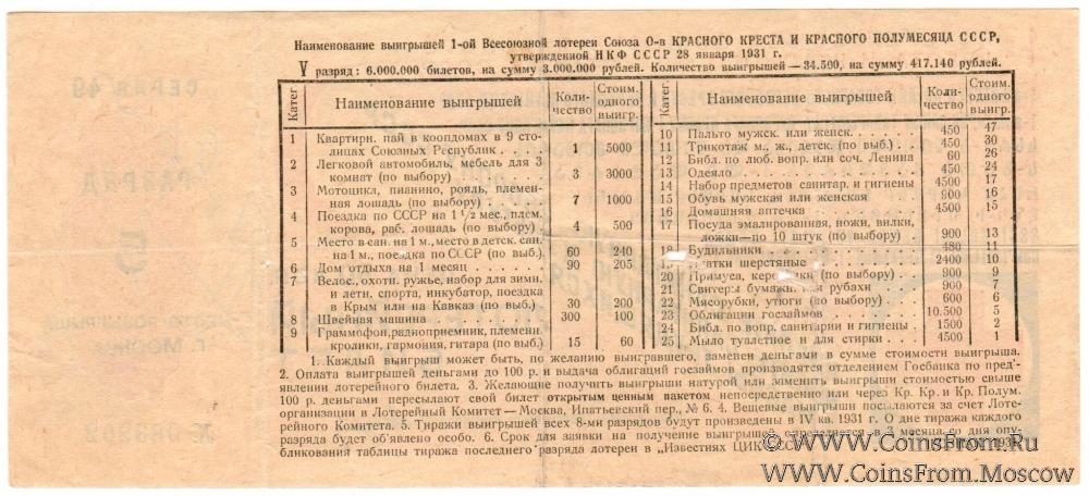 Лотерейный билет. Разряд 5 - Москва. 1-я лотерея.