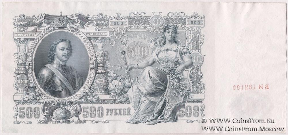 Водяной знак: справа, на купоне - портрет императора Петра I. По всему полю - повторяющиеся по углом 45 градусов числа 500, расположенные перпендикулярно друг другу.