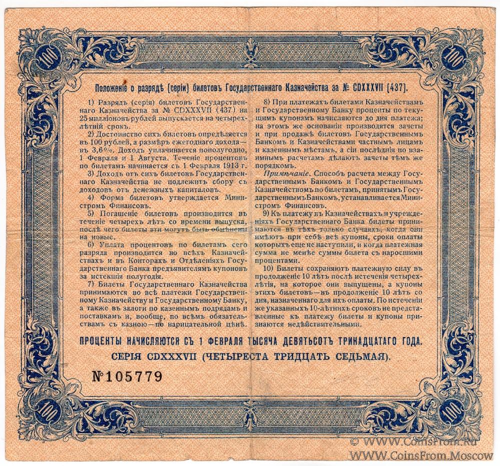 Серия 437 (Разряд CDXXXVII). Подпись директора - Лебединский С. Билет Государственного Казначейства (БГК).