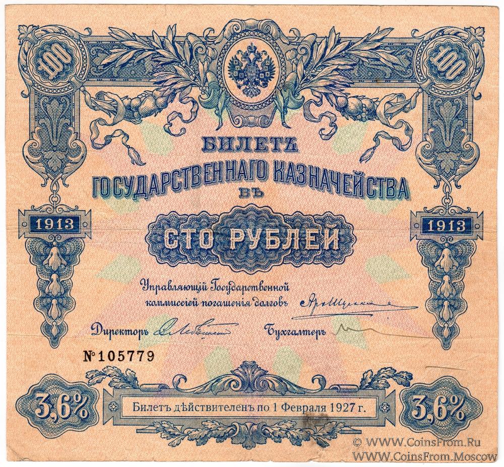 Указ о выпуске № от 23 июня 1912 г. Ежегодный доход - 3,6%. Проценты начисляются с 1 февраля 1913 г.