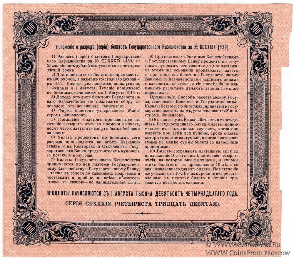 Серия 439 (Разряд CDXXXIX). Подпись директора - Небольсин П. Билет Государственного Казначейства (БГК).