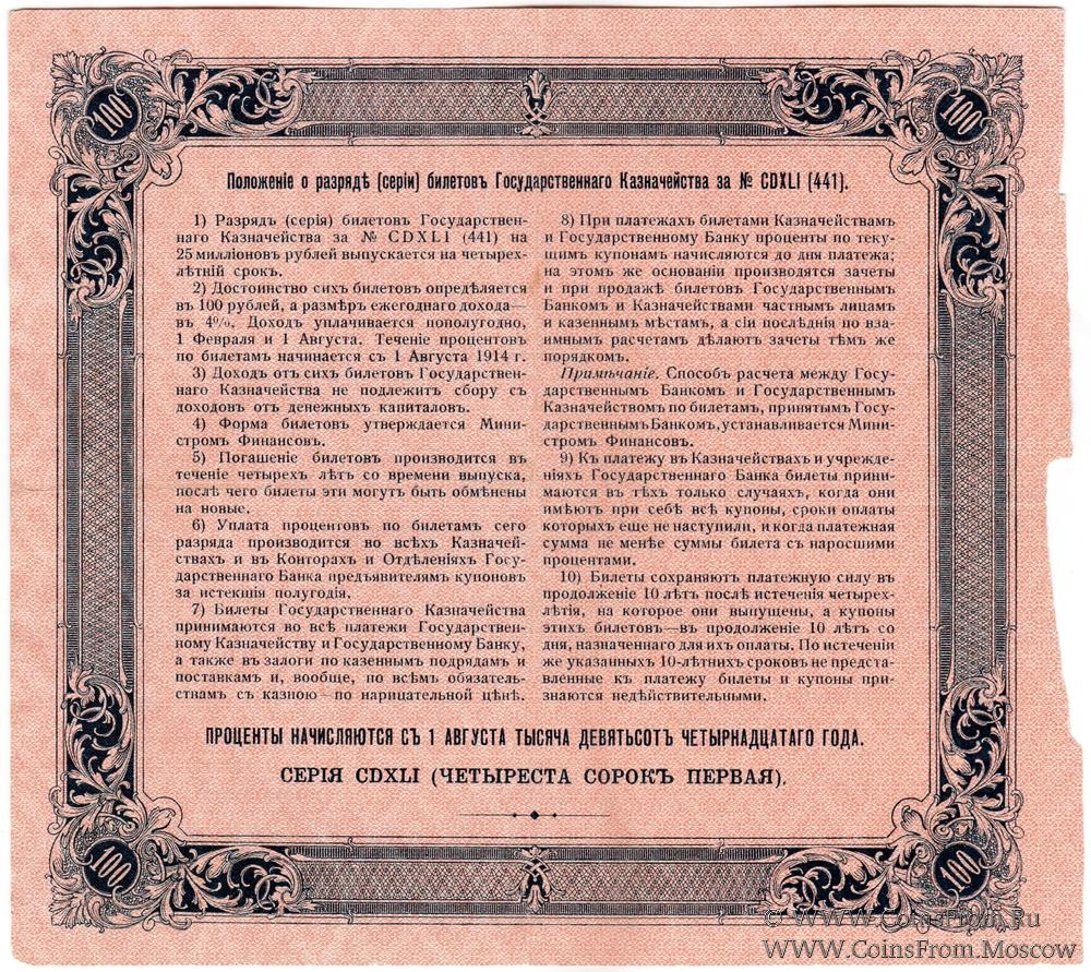 Серия 441 (Разряд CDXLI). Подпись директора - Андреевский А. Билет Государственного Казначейства (БГК).