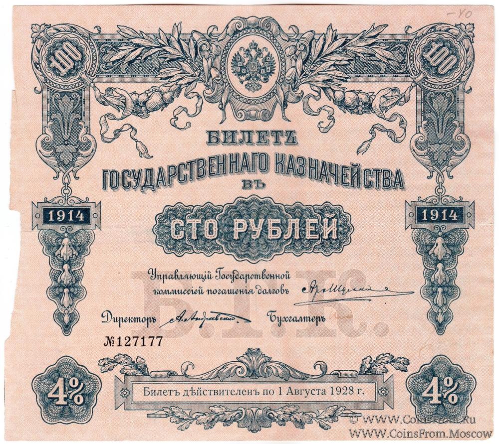 Ежегодный доход - 4%. Проценты начисляются с 1 августа 1914 г.