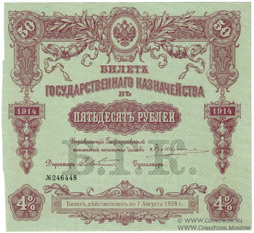 Ежегодный доход - 4%. Проценты начисляются с 1 августа 1914 г.