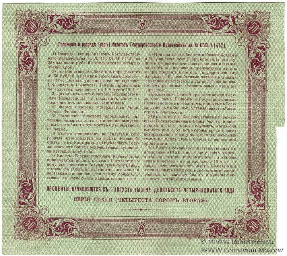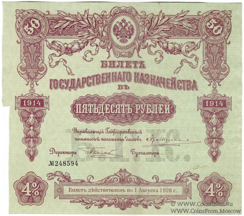 Ежегодный доход - 4%. Проценты начисляются с 1 августа 1914 г.