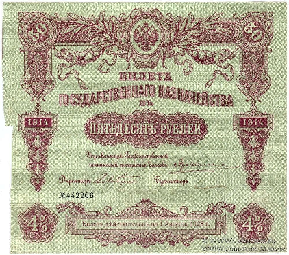 Ежегодный доход - 4%. Проценты начисляются с 1 августа 1914 г.