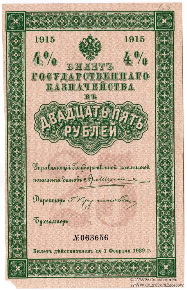 Ежегодный доход - 4%. Проценты начисляются с 1 февраля 1915 г..