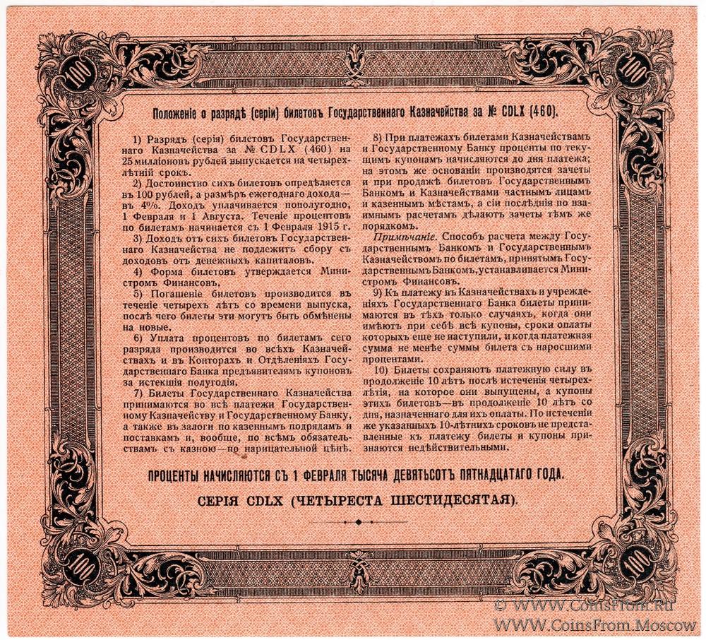 Серия 460 (Разряд CDLX). Подпись директора - Круликовский Г. Билет Государственного Казначейства (БГК).