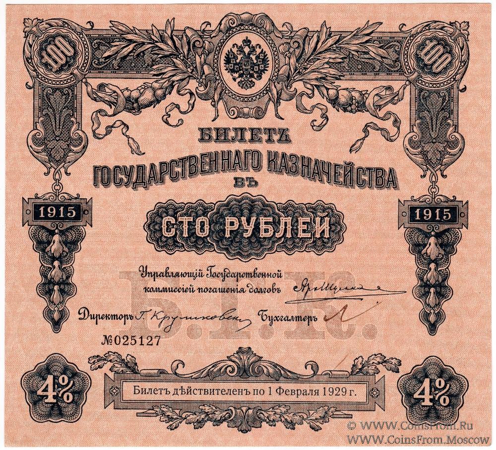 Ежегодный доход - 4%. Проценты начисляются с 1 февраля 1915 г..