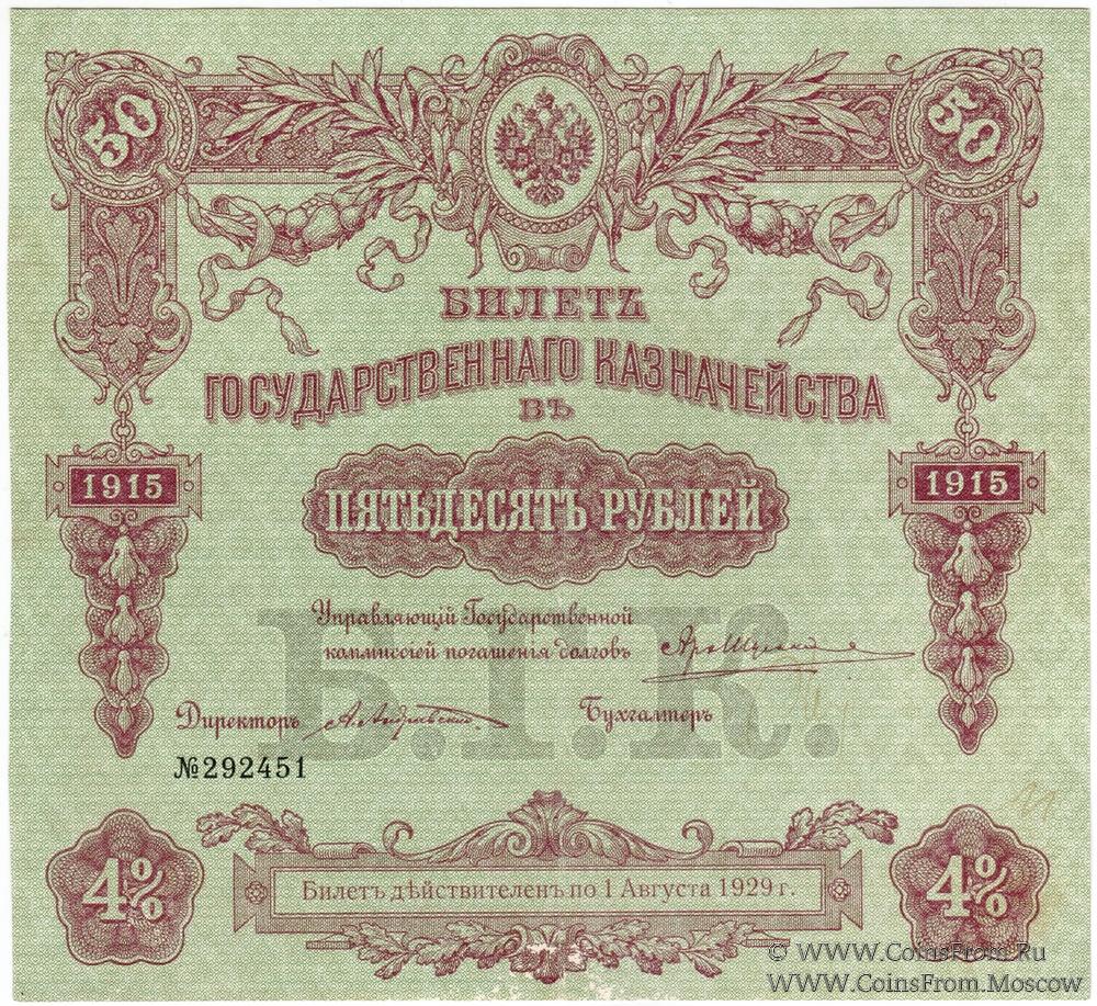 Ежегодный доход - 4%. Проценты начисляются с 1 августа 1915 г.