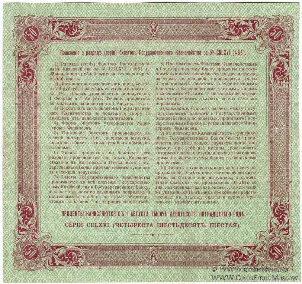 Серия 466 (Разряд CDLXVI). Подпись директора - Небольсин П. Билет Государственного Казначейства (БГК).