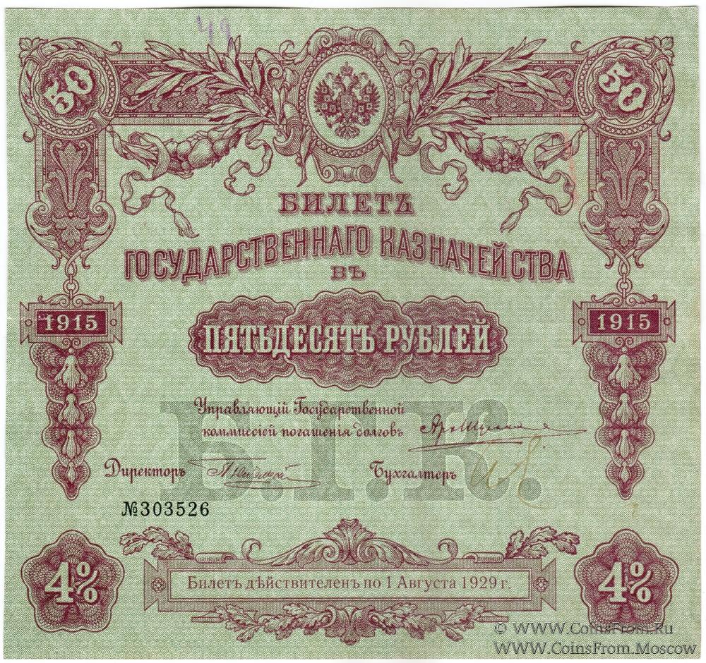 Ежегодный доход - 4%. Проценты начисляются с 1 августа 1915 г.