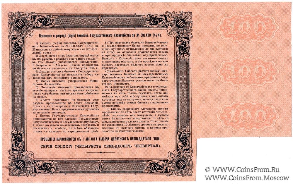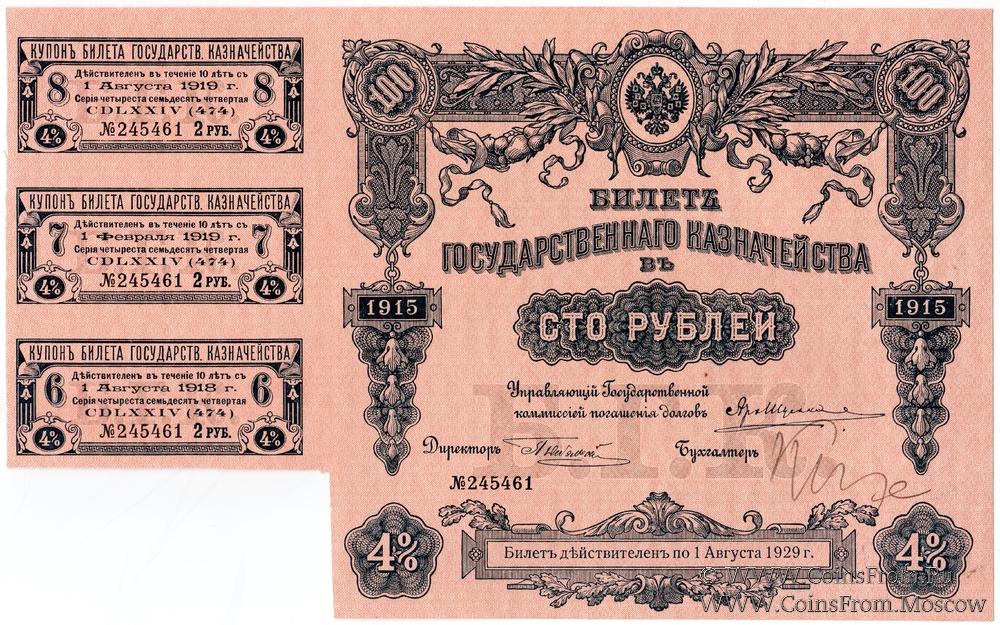 Ежегодный доход - 4%. Проценты начисляются с 1 августа 1915 г.