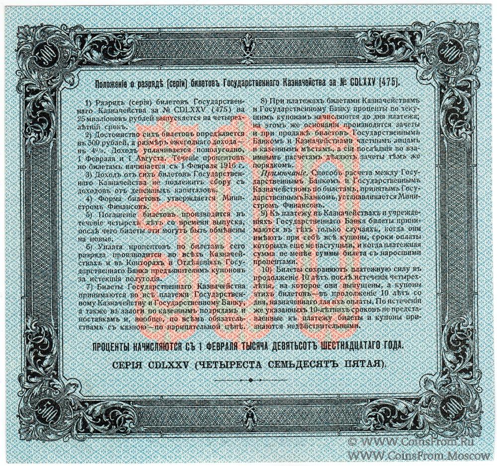 Серия 475 (Разряд CDLXXV). Подпись директора - Небольсин П. Билет Государственного Казначейства (БГК).