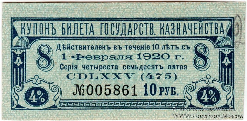 Купон 10 рублей 1918 г. (серия 475)