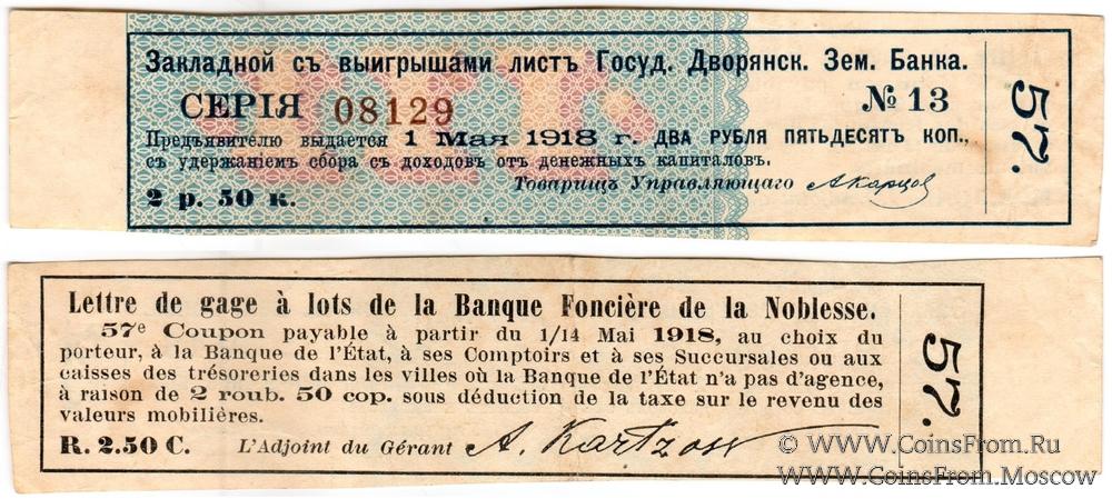 Купон 2 рубля 50 копеек 1918 г. (№ 57)