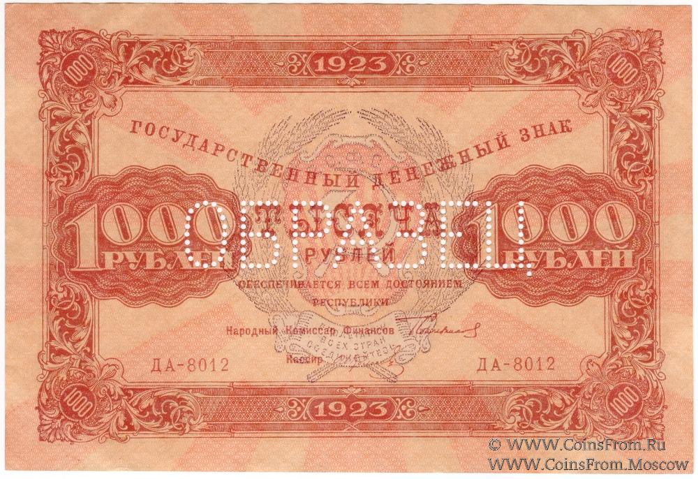Государственный денежный знак РСФСР 1000 рублей образца 1923 г.