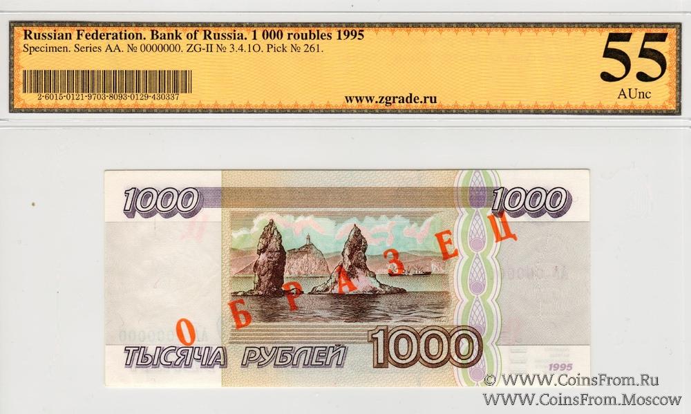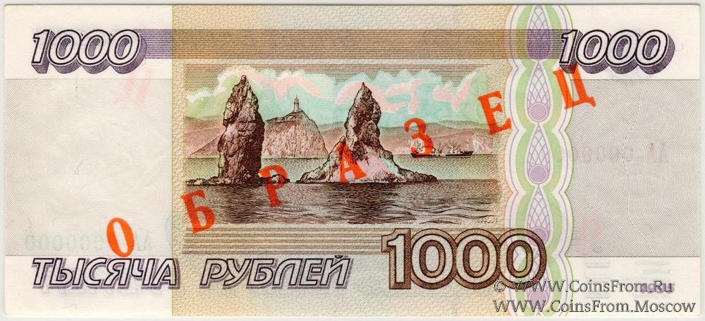 Водяной знак - памятник русскому паруснику "Манчжур" (на широком купонном поле), номинал "1000" (на узком купонном поле).