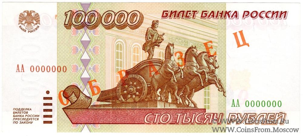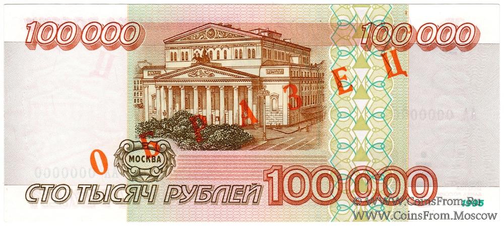 Водяной знак - Большой театр в Москве (на широком купонном поле), номинал "100000" (на узком купонном поле).