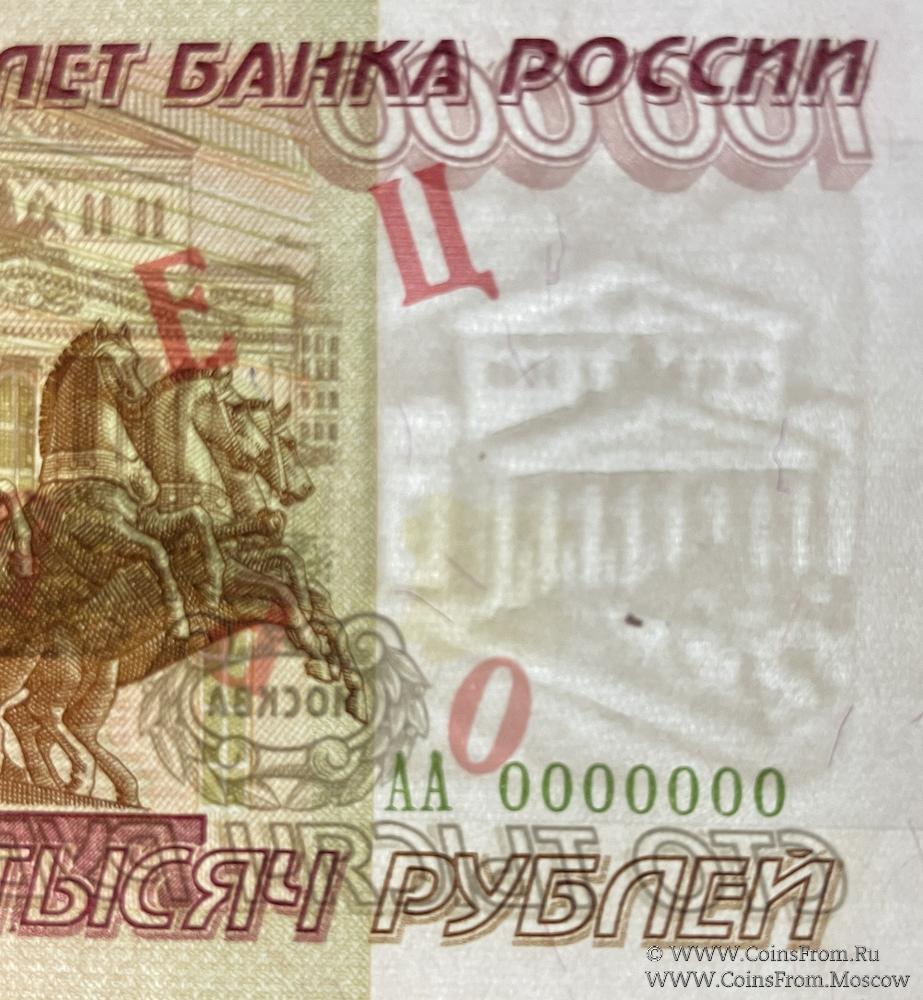 Диагональная надпечатка красного цвета "ОБРАЗЕЦ" на аверсе и реверсе.