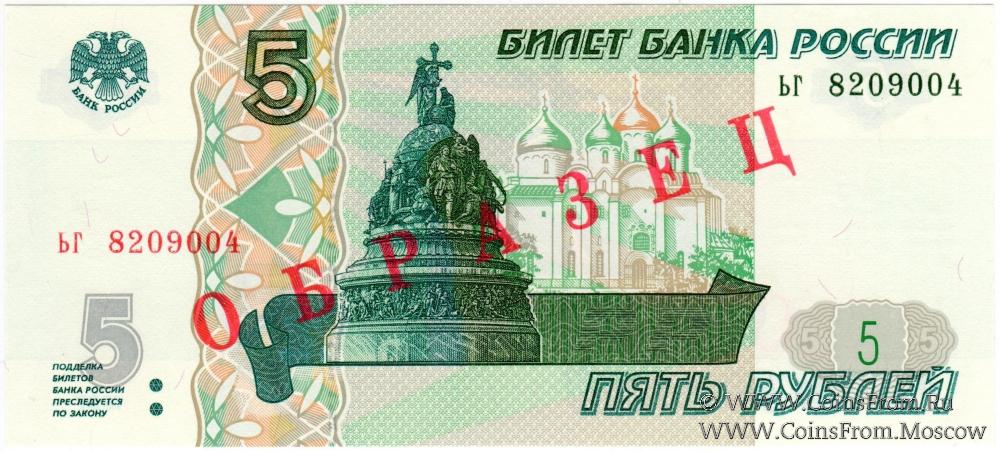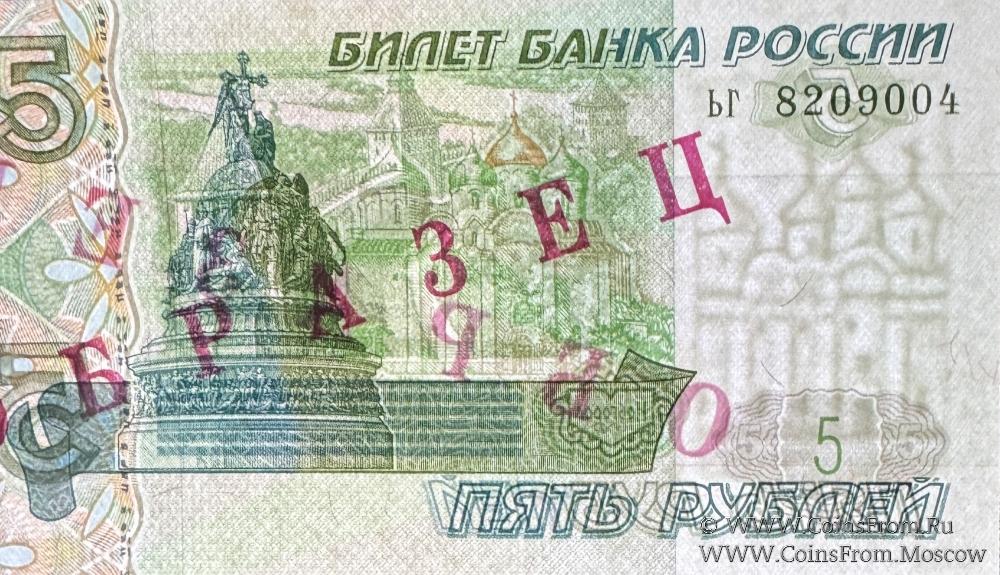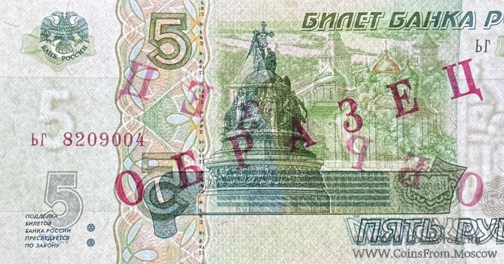 ОБРАЗЕЦ двусторонний: диагональная надпечатка красного цвета "ОБРАЗЕЦ" на аверсе и реверсе. Серия и номер произвольные. ГОЗНАК.
