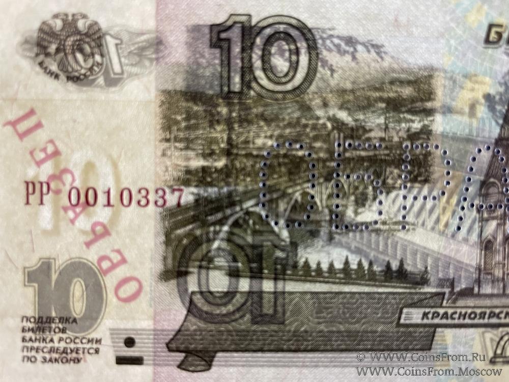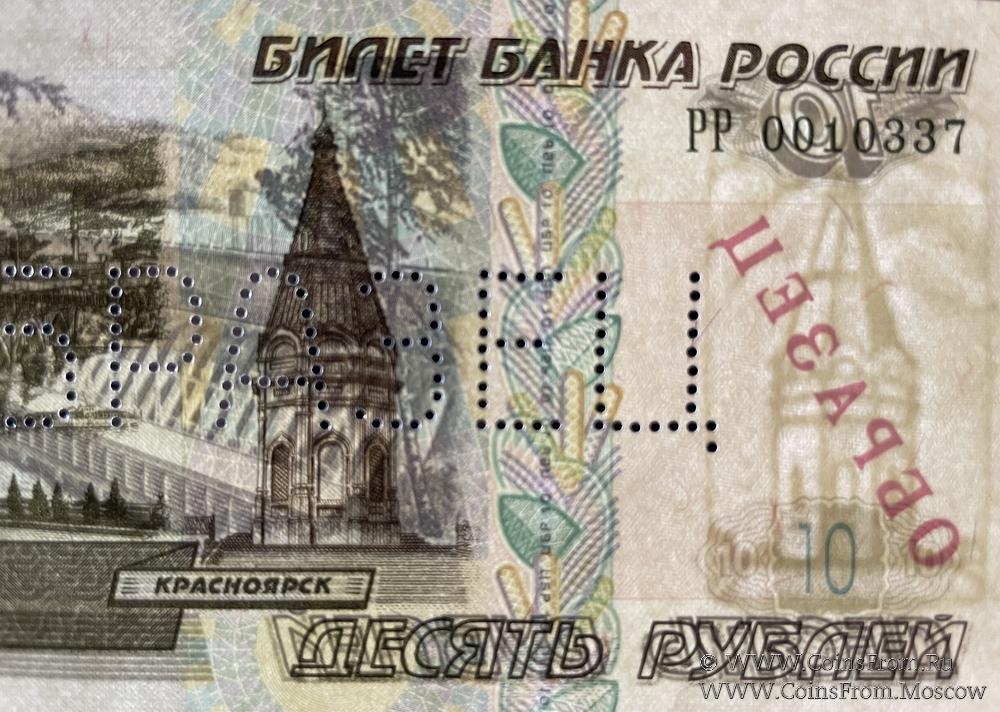 ОБРАЗЕЦ двусторонний: горизонтальная перфорация слова "ОБРАЗЕЦ"; диагональная надпечатка красного цвета "ОБРАЗЕЦ" дважды на реверсе. Серия РР, номер произвольный.