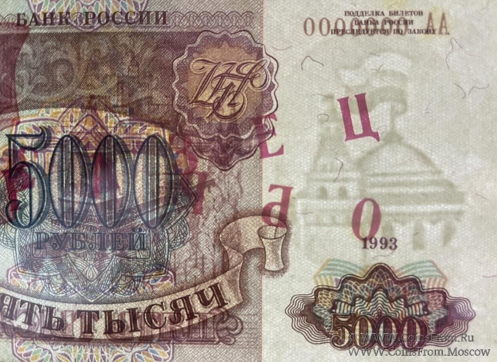 Диагональная надпечатка красного цвета "ОБРАЗЕЦ" на аверсе и реверсе. Серия АА.