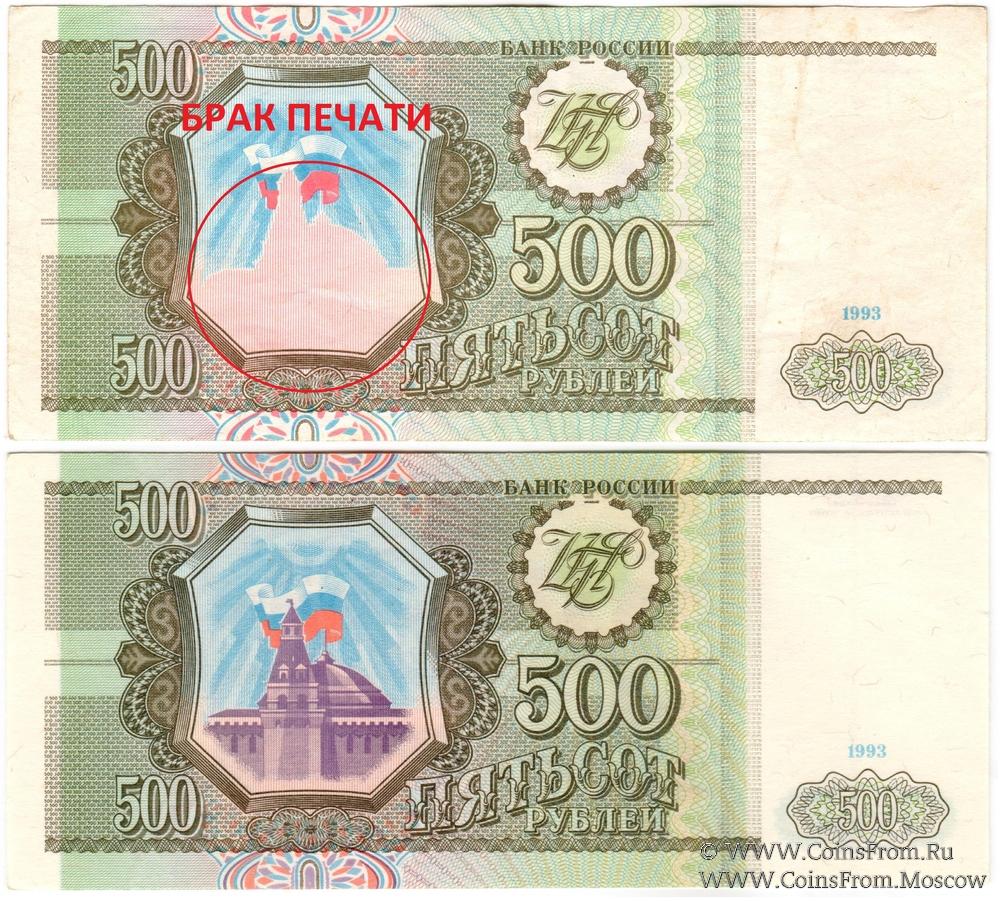 Билет Банка России образца 1993 г. БРАК печати (непропечатка на аверсе). Серии АА - ЭЯ.