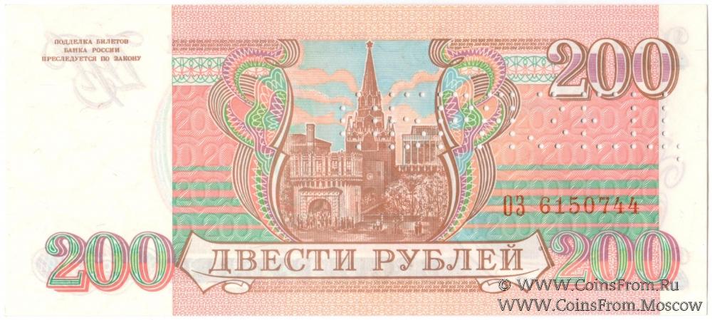 Билет Банка России образца 1993 г. ОБРАЗЕЦ: горизонтальная перфорация "ОБРАЗЕЦ" (со стороны реверса), номер произвольный. Серия ОЗ. Центральный Банк России. ГОЗНАК.