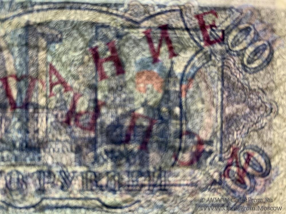 Билет Банка России образца 1993 г. ИСПЫТАНИЕ: диагональная надпечатка красного цвета "ИСПЫТАНИЕ" на аверсе и реверсе. Шрифт надпечатки соответствует шрифту стандартных надпечаток "ОБРАЗЕЦ". Серия НЕ. Водяной знак - большие звезды между волнистых линий. Центральный Банк России. ГОЗНАК.
