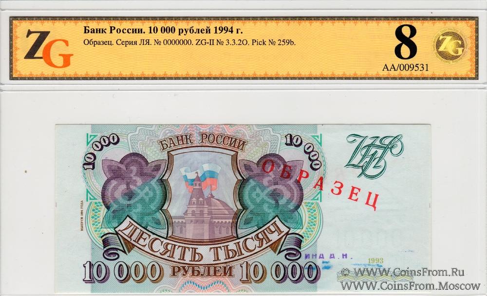 Водяной знак на купонной части банкноты - Сенатская башня Московского Кремля, под башней номинал "10000". Голубоватая бумага.