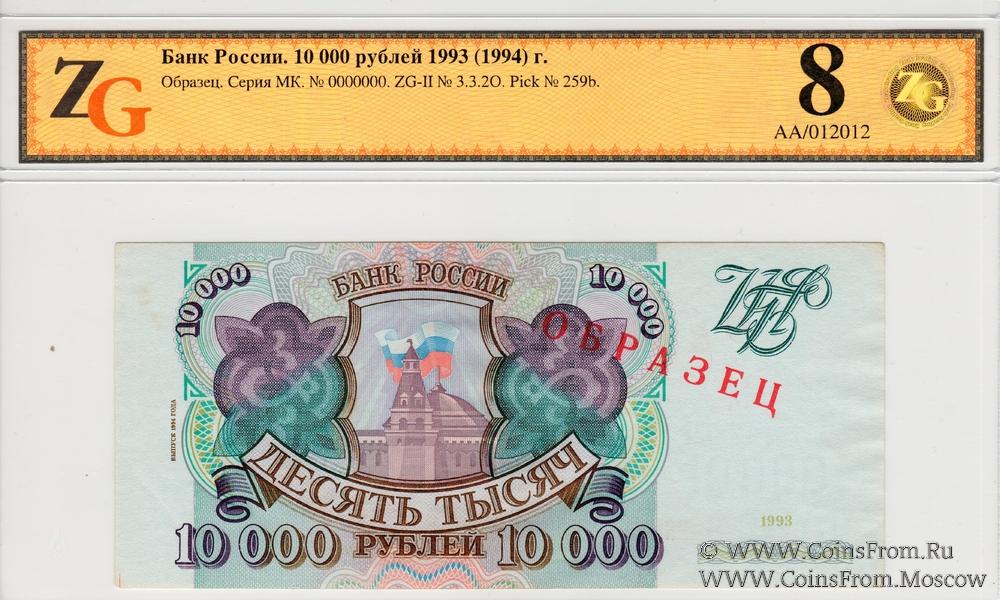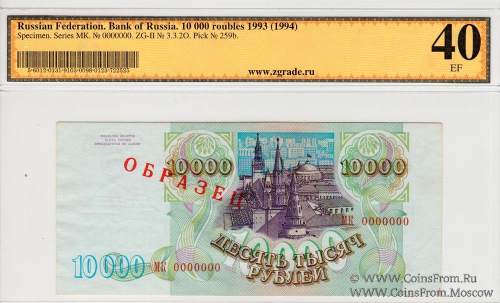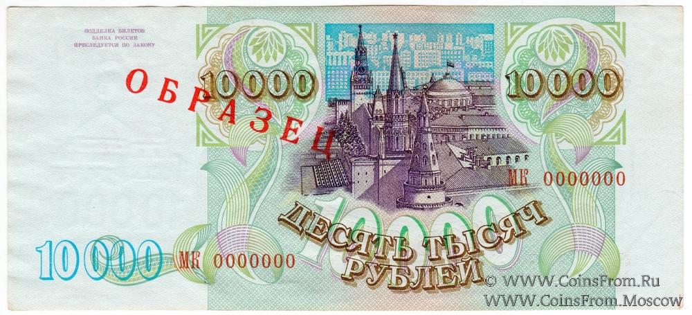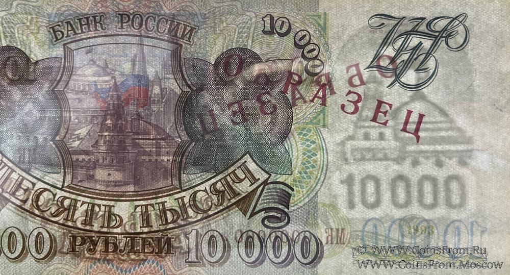 Водяной знак на купонной части банкноты - Сенатская башня Московского Кремля, под башней номинал "10000". Голубоватая бумага.