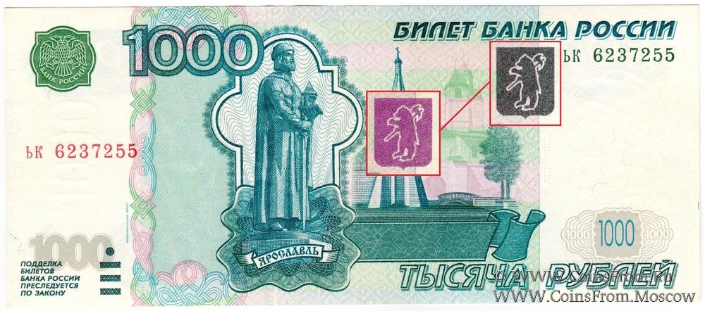 Билет Банка России образца 1997 г. Выпуск 2004 г. (модификация 2004 г.). БРАК: голограмма другого цвета. ГОЗНАК.