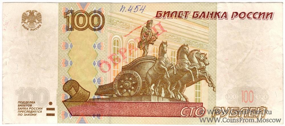 100 рублей 1997 (2004) г. ОБРАЗЕЦ (технологический) двусторонний