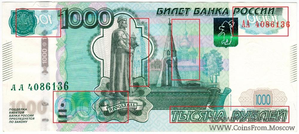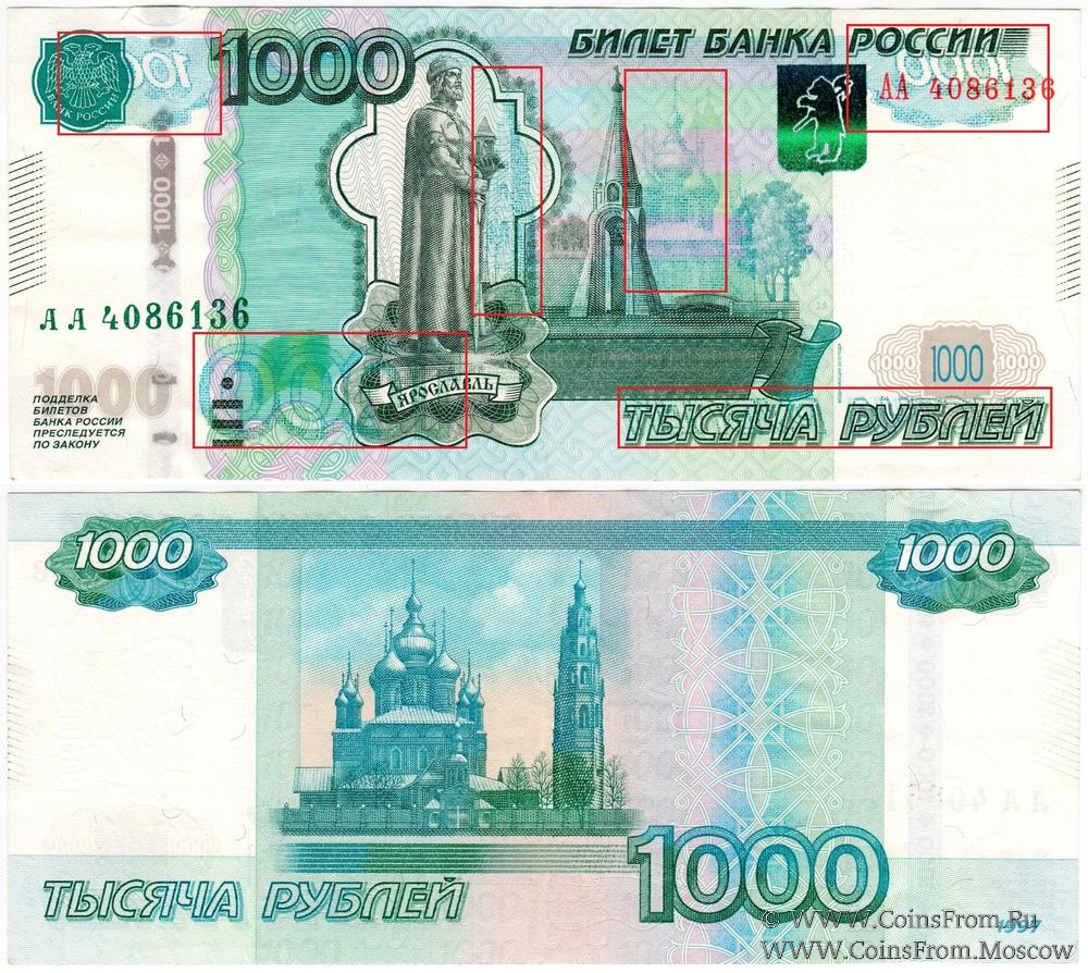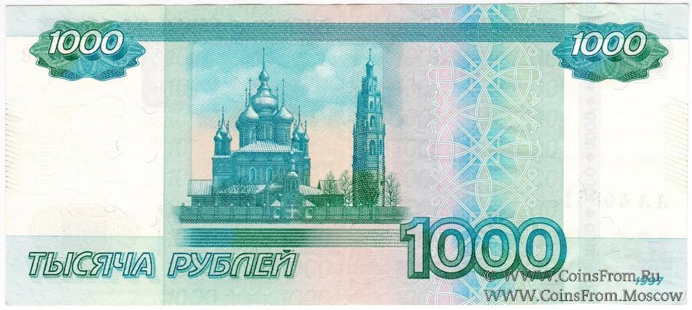 Билет Банка России образца 1997 г. Выпуск 2010 г. (модификация 2010 г.). БРАК печати: рисунок реверса отпечатался на аверсе (абкляч). ГОЗНАК.
