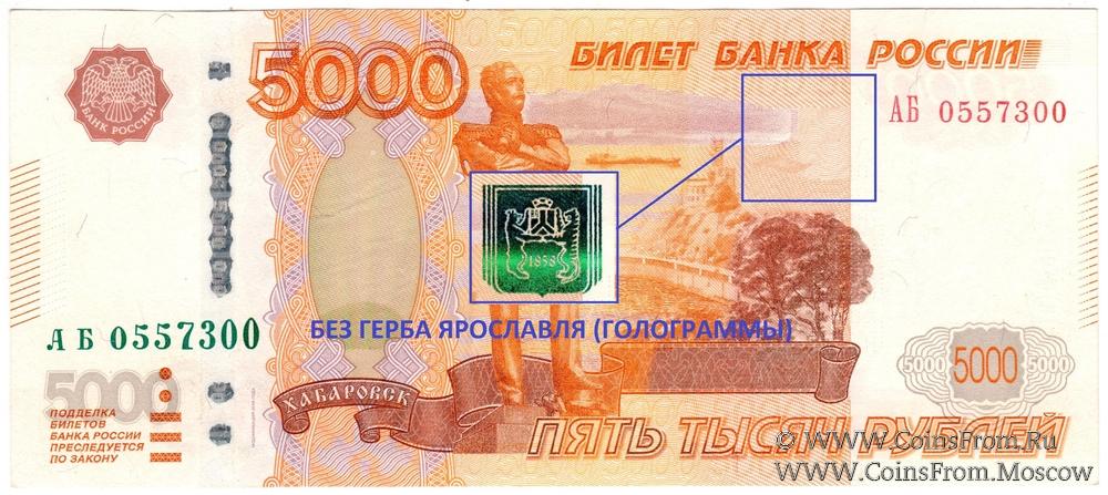 Билет Банка России образца 1997 г. Выпуск 2010 г. (модификация 2010 г.). БРАК: без герба Ярославля (голограммы). Тип серии "ХХ". ГОЗНАК.