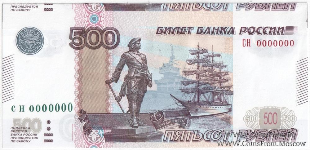 500 рублей 1997 (2010) г. ПРЕДОБРАЗЕЦ / БРАК