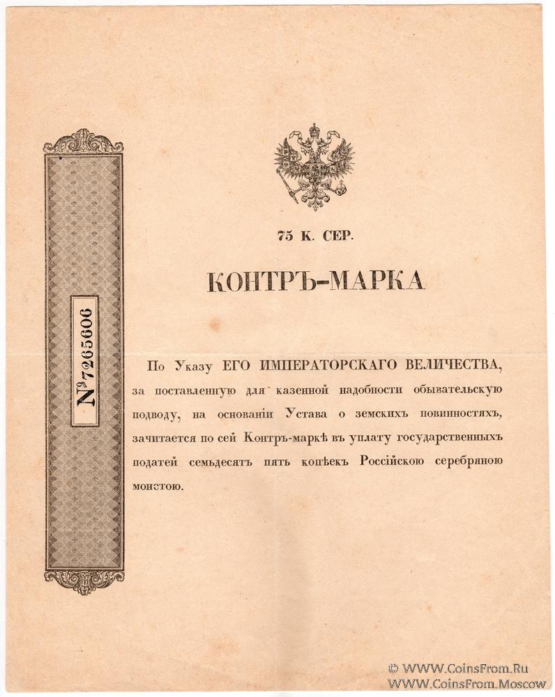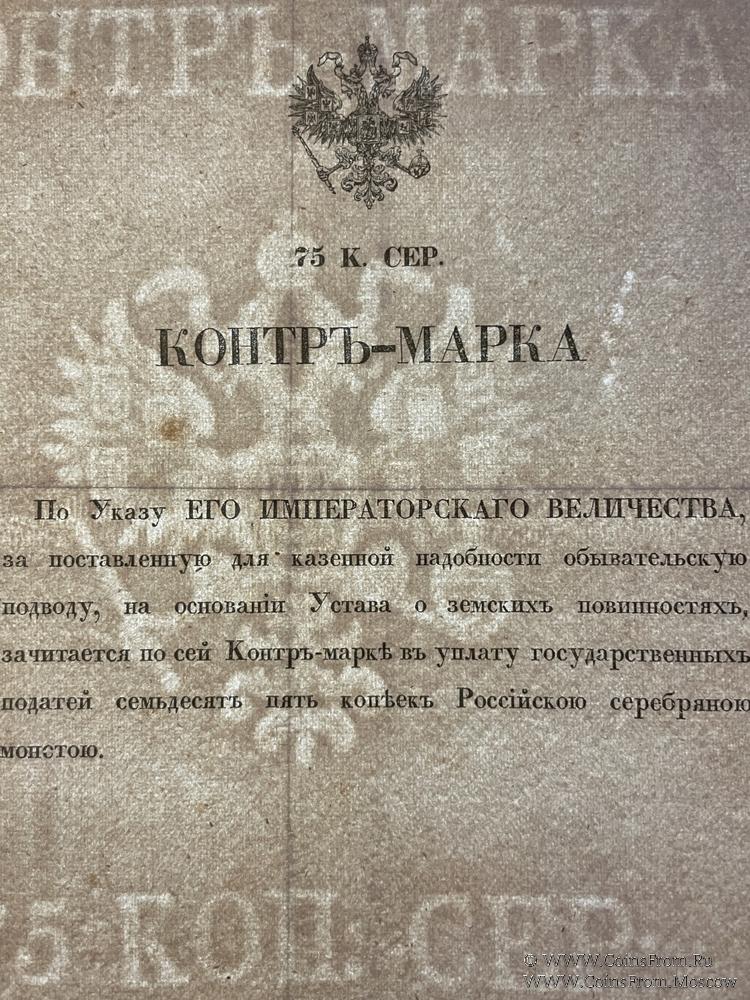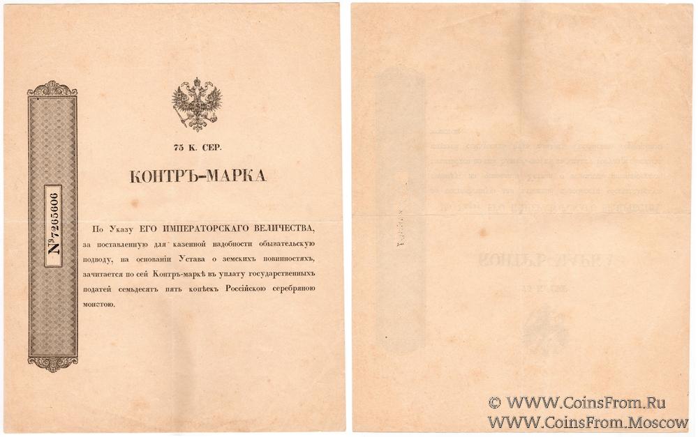 Контр-марка без даты (1857 г.). Вариант 2: Герб "узкий" (26 мм) образца 1857 г. Военное Министерство.