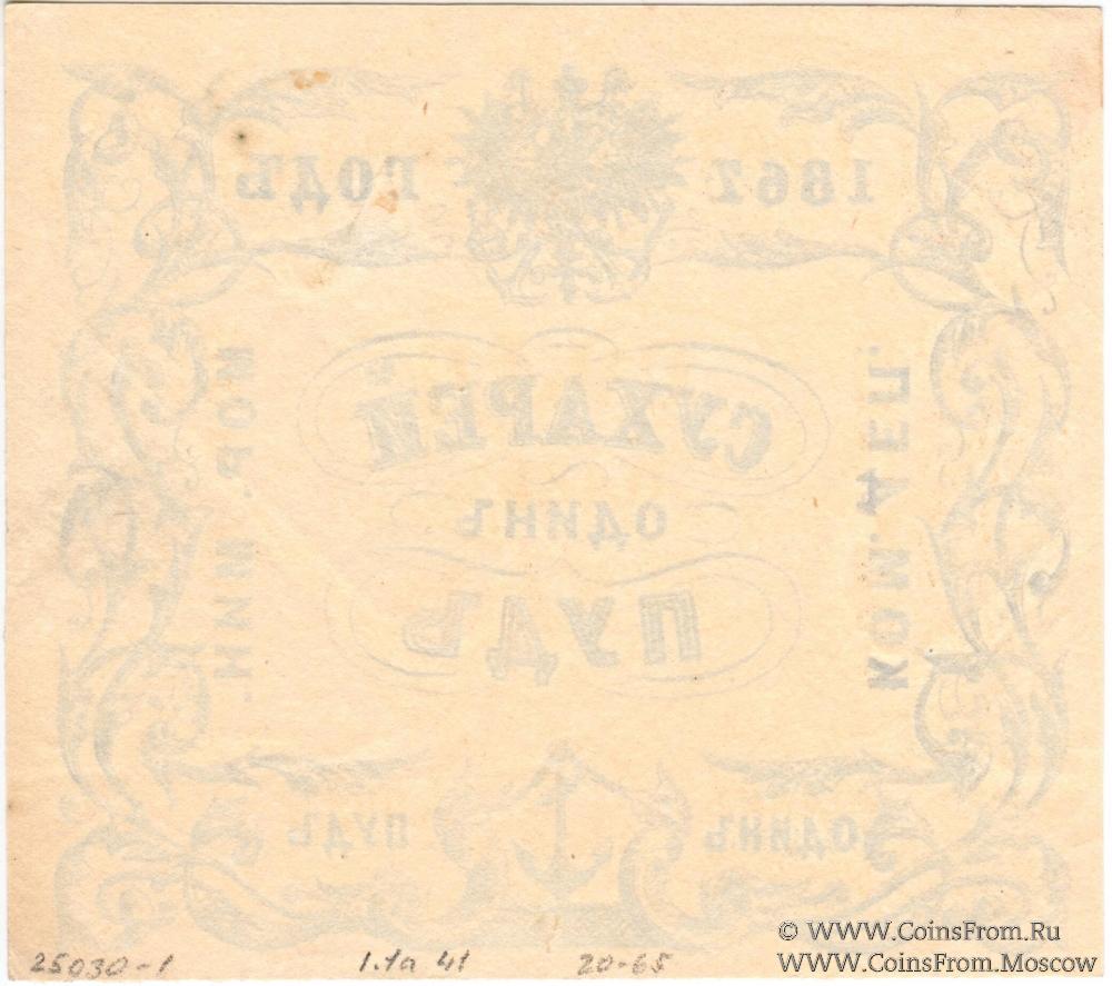 Коммерческий Департамент Морского Министерства. Квитанция на приобретение продовольствия 1867 г. Водяной знак.