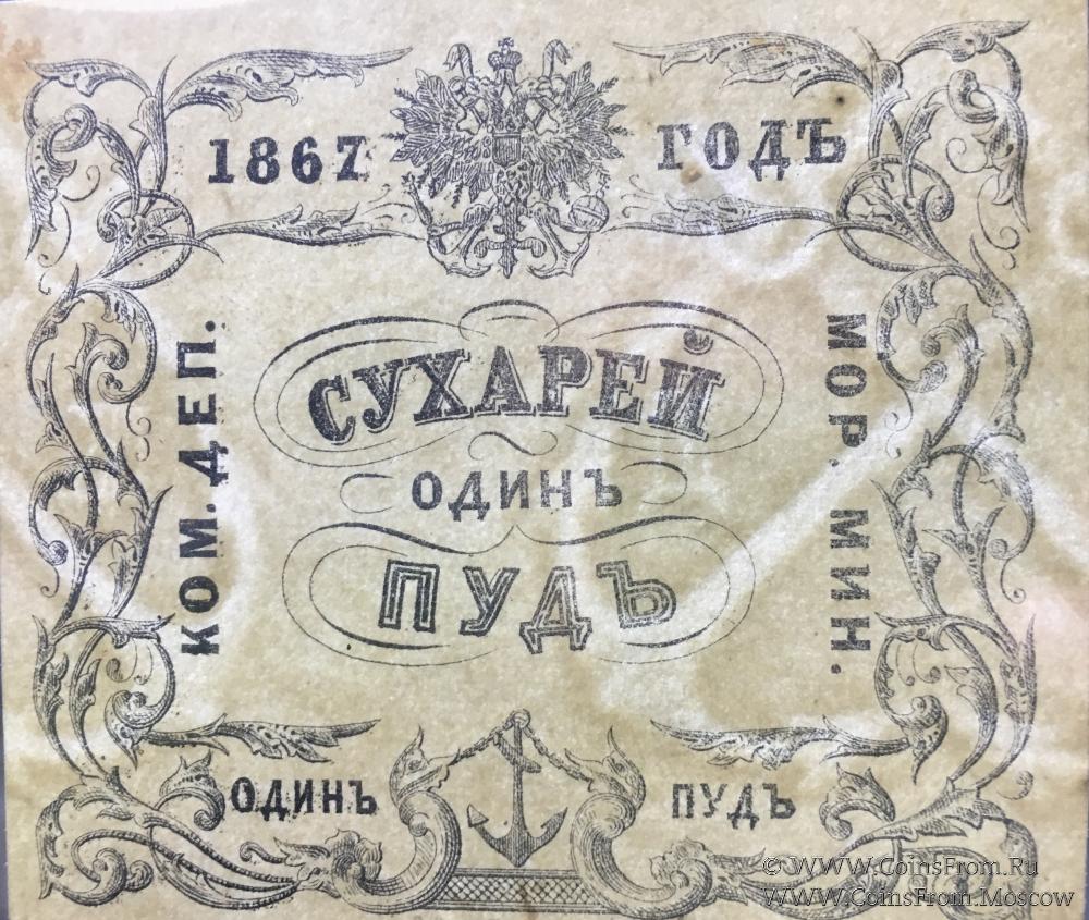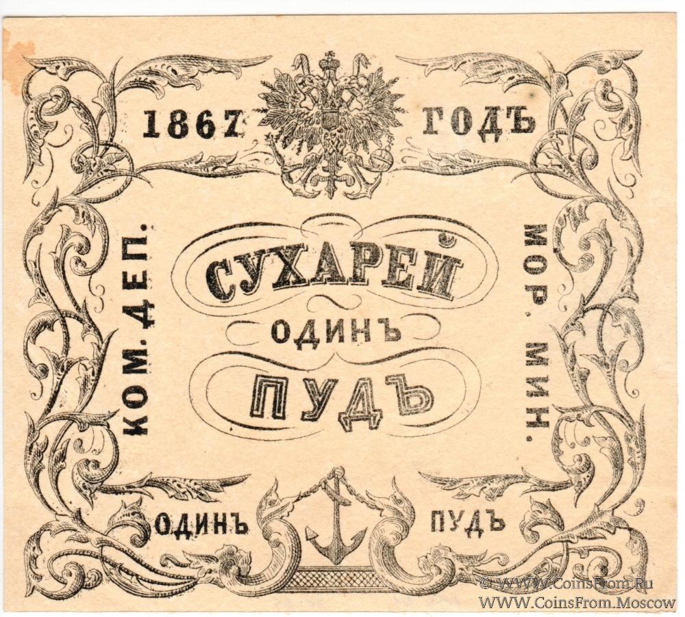 В середине XIX века по указанию морского министра коммерческим департаментом морского министерства производился выпуск квитанций для безналичной оплаты продовольствия, необходимого для экипажей морских судов. Оплата квитанций поставщику производилась при предъявлении в коммерческом департаменте морского министерства. Встречаются довольно редко.