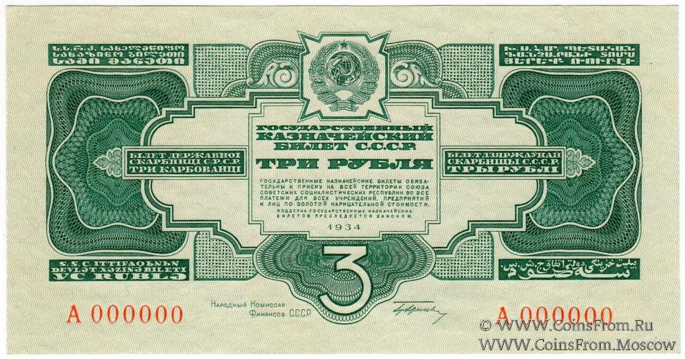 Государственный казначейский билет СССР образца 1934 г. Выпуск 1.