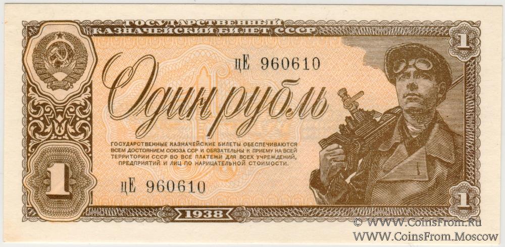 Государственный Казначейский Билет СССР образца 1938 г. Формат серии хХ. Длина номера 15 мм. Государственный Банк СССР.