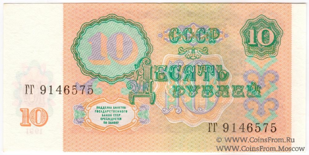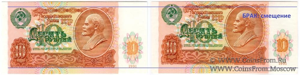 Билет Государственного Банка СССР образца 1991 г. БРАК: смещение фонового рисунка на аверсе. Серия ГГ. Водяной знак "звезды". Государственный Банк СССР. ГОЗНАК.