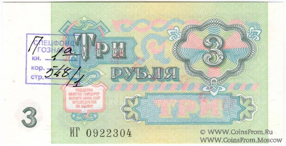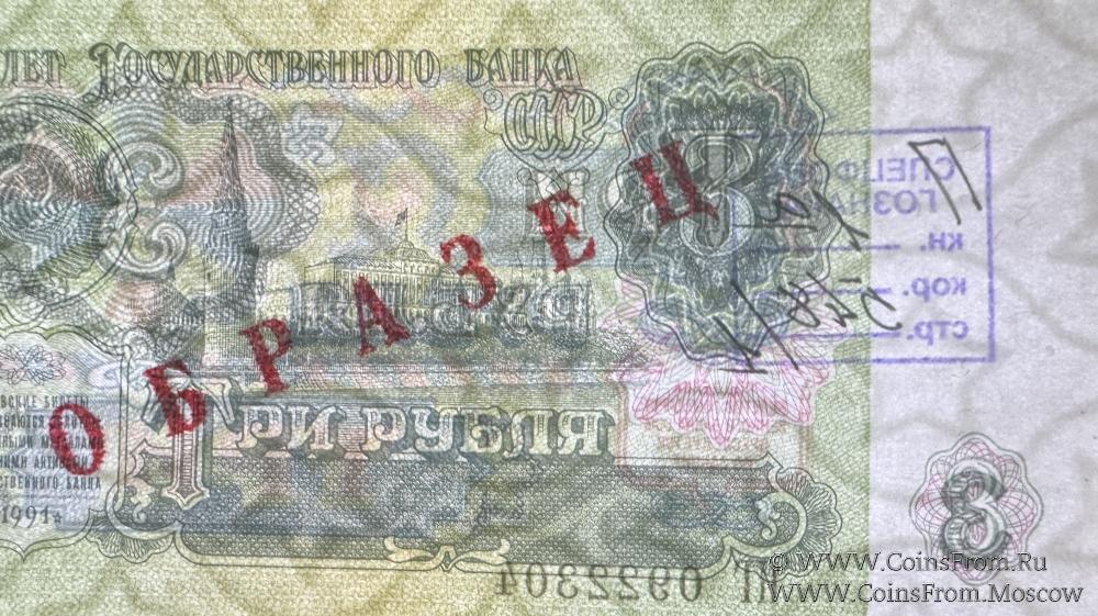 3 рубля 1991 г. ОБРАЗЕЦ двусторонний