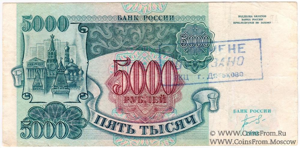 Билеты Банка России образца 1992 г. Серия АВ. Водяной знак - "звездочки". Штамп на аверсе прямоугольной формы в три строки: "В ОБМЕНЕ / ОТКАЗАНО / РКЦ г. Дядьково". Центральный Банк России. ГОЗНАК.