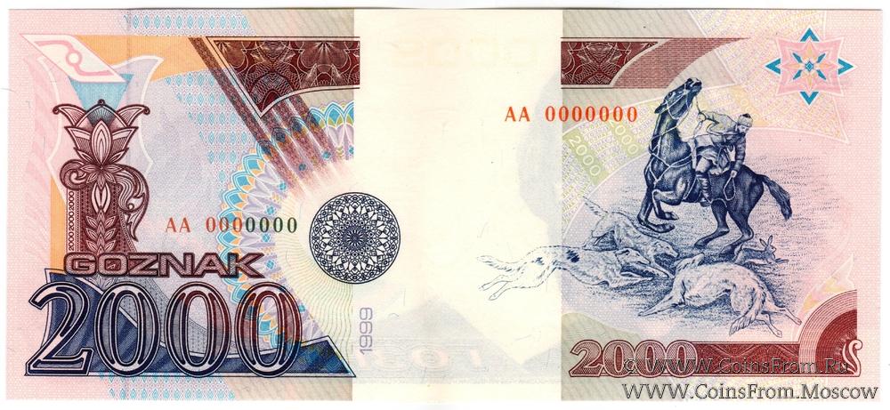 Презентационная банкнота. ГОЗНАК 1999 г. Серия АА. Водяной знак - портрет. Бумага жёлтая. "Тургенев И.С.".