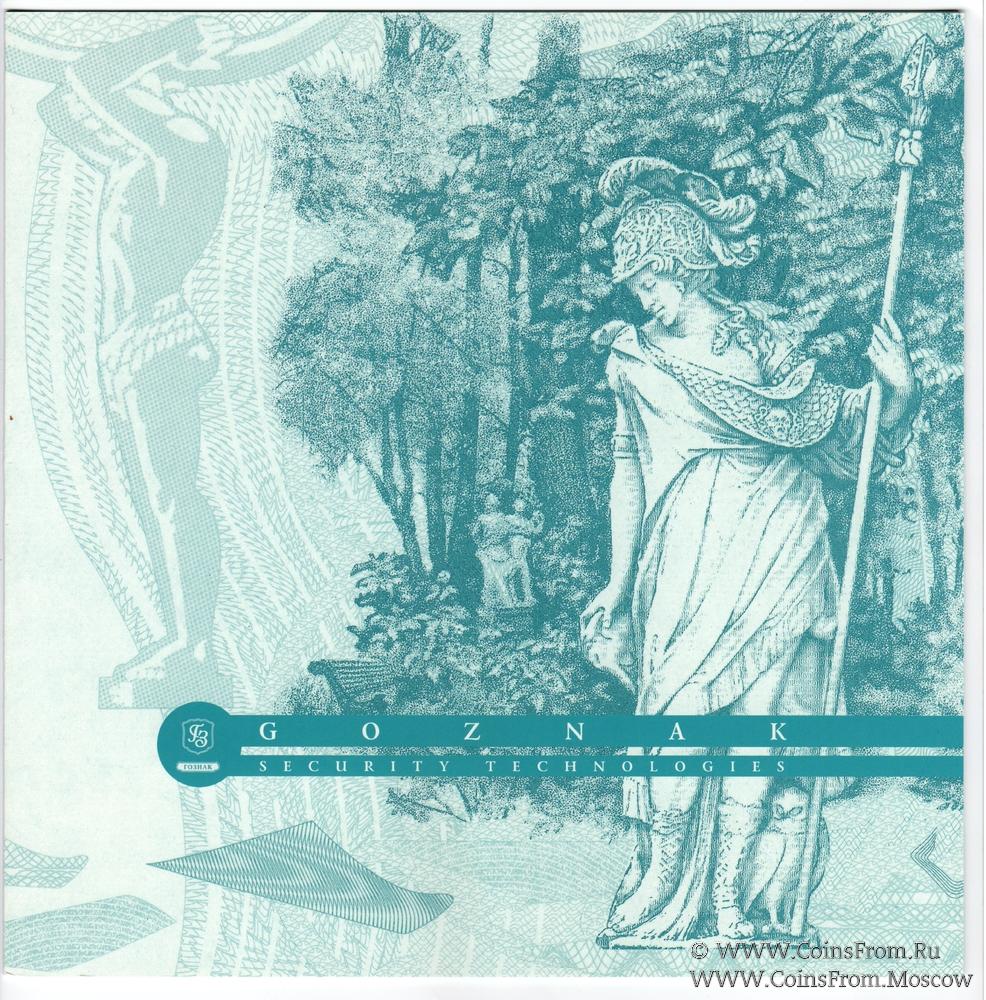 Буклет с презентационной банкнотой "300 лет Санкт-Петербургу". Вариант 1. 2002 г. ГОЗНАК. Водяной знак - "корабль". Серия "Технологии безопасности".