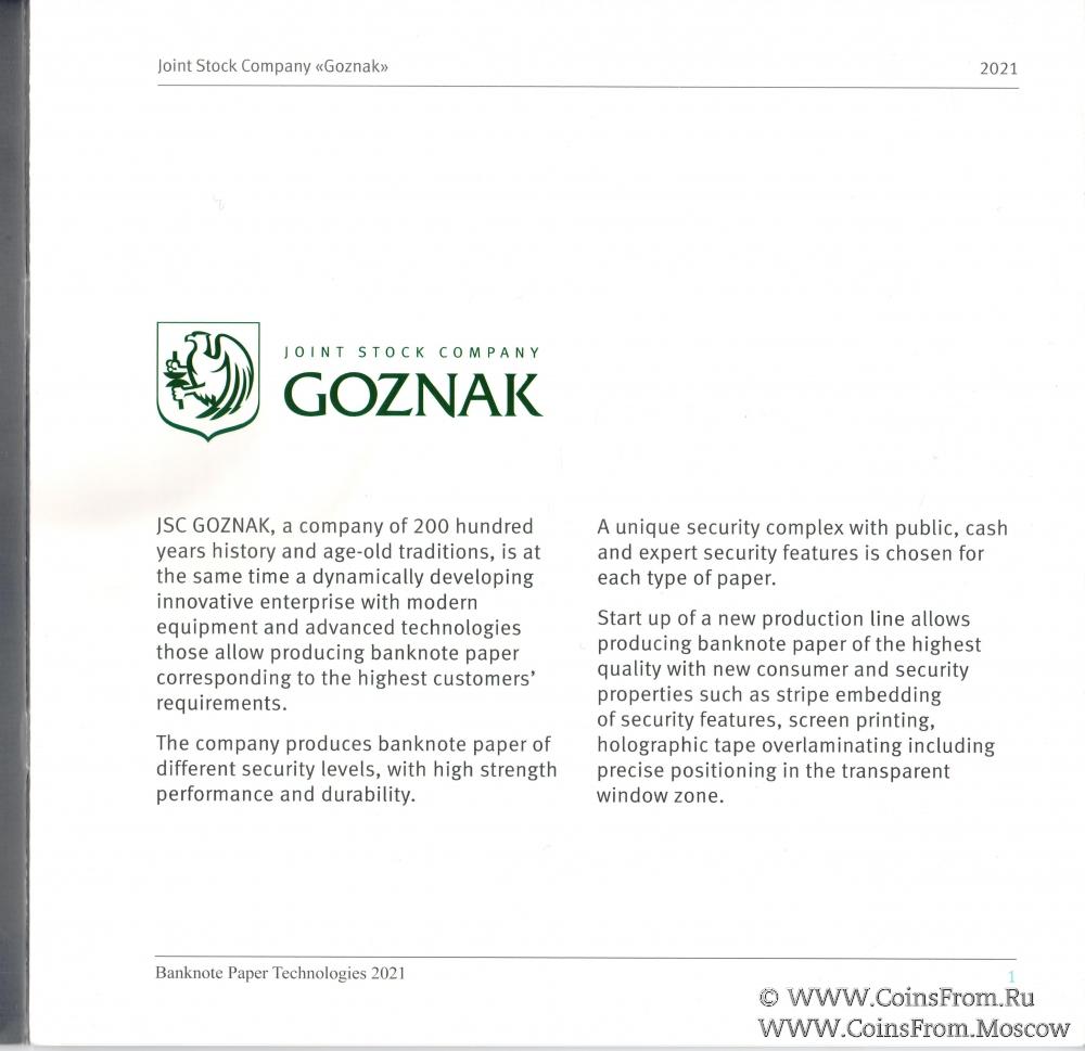 Буклет "Banknote Paper Technologies 2021". 2021 г. ГОЗНАК
