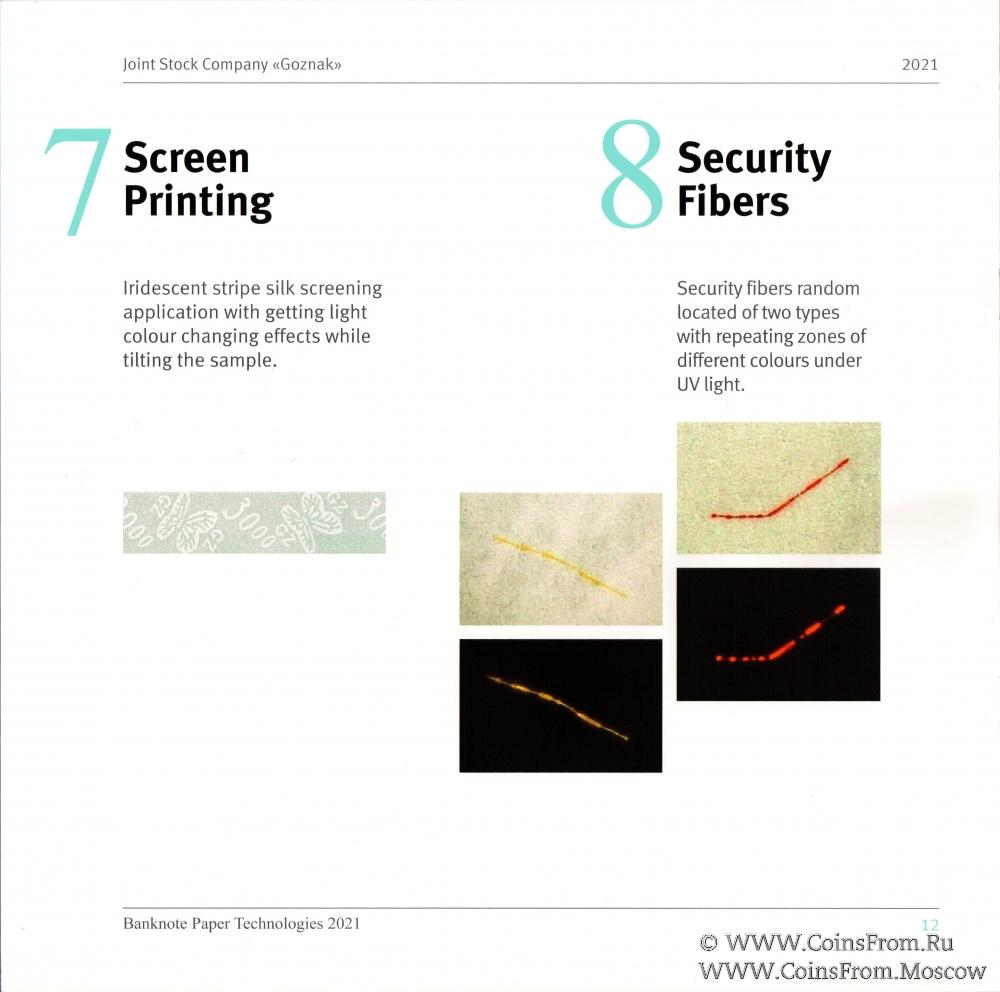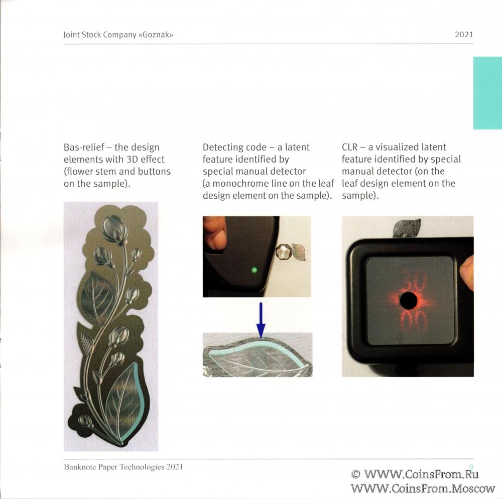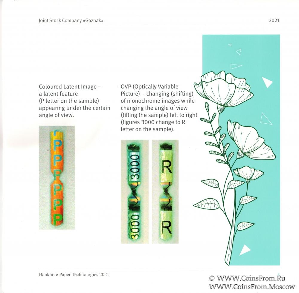 Буклет "Banknote Paper Technologies 2021". Заготовки банкнот с примерами водяных знаков, защитных нитей и волокон (2 шт). На английском языке. ГОЗНАК.